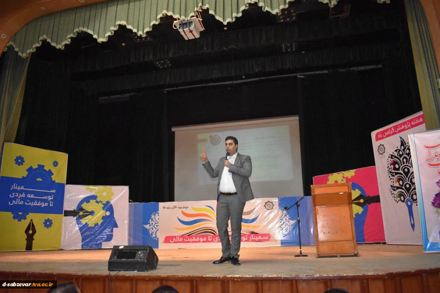 برگزاری سمینار "توسعه فردی تا موفقیت مالی"توسط استاد ارجمند دکتر میثم شکری ساز ،خالق برند آموزش مجازی پارس با حضور جمع کثیری از مسئولین شهرستان واساتید ودانشجویان دانشگاههای شهر به میزبانی دانشکده فنی دختران سبزوار