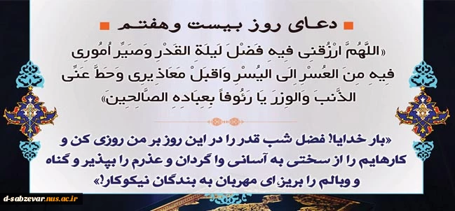 دعای روز بیست وهفتم ماه مبارک رمضان