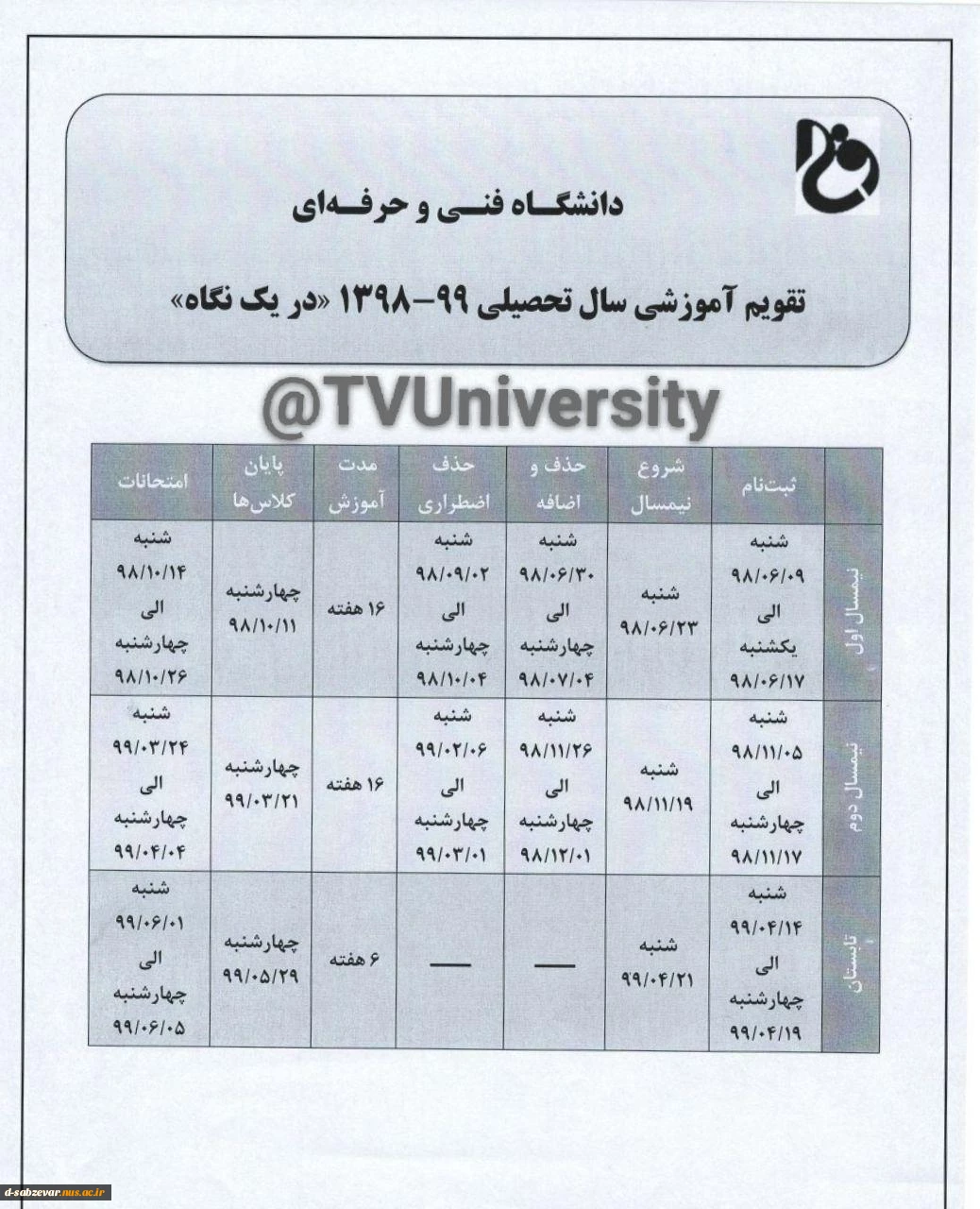 امتیاز دهید : تقویم آموزشی دانشگاه فنی و حرفه ای سال تحصیلی 99-1398 2 پنجشنبه 15 شهریور 1397 ساعت 11:30